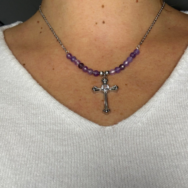 Collier Croix Intérieure#3 – Améthyste