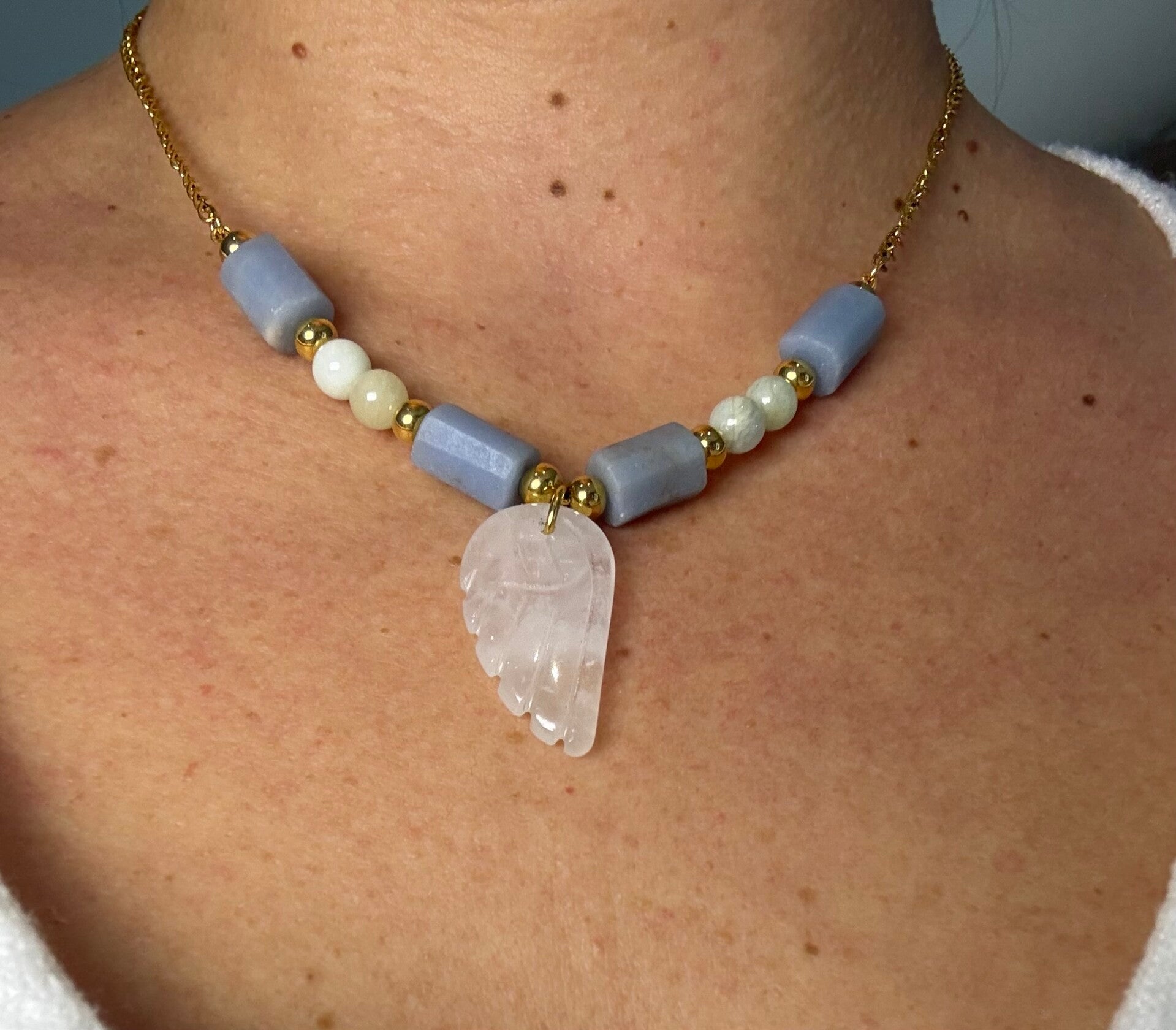 Collier Ailes de Lumière #5 Angélite & Aigue-marine